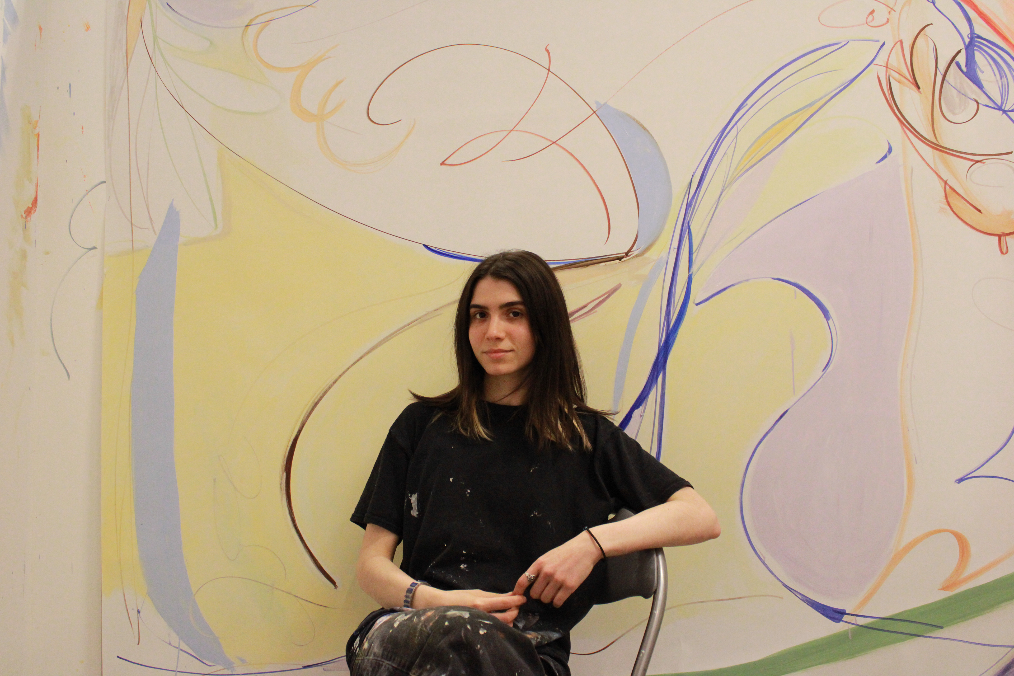 Her practice, primarily centred on painting and its expansive forms, explores subjects related to fragments of memory, notions of place and reimagining cultural heritage. Through a poetic mark-making, Bampali explores what is 'half-remembered' and what 'can be rebuilt anew' by moving delicately between semi-figuration and abstraction. Through recurrent calligraphic motifs and a colour palette that evokes a Mediterranean sensibility, her work blends the otherworldly and ephemeral, moving beyond past and present; the native and every day.